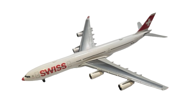 From 2003, a total of 15 Airbus A340s were operated by Swiss. Even if, according to the latest reports, some of these will still be kept in reserve status after 2025, the end of the four-engine aircraft's scheduled service with Swiss is imminent. So what better time to dedicate one last special edition to the A340. For years now, it has become a small tradition to have an aircraft take off for a few weeks in December, as a Swiss Rudolph, so to speak. As part of its annual LX-Mas campaign - LX is the IATA code for Swiss - the Swiss airline paints the nose of one or more aircraft red as a reference to the world’s most famous reindeer. In time for the holiday season, we are creating a small memorial for the A340 in the 1/500 scale with this red-nosed new release.