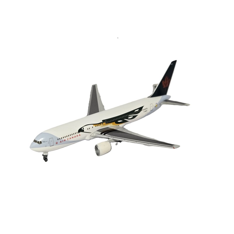 This die-cast metal model airplane is in a scale of 1/500. The model is approximately 5 ¾ inches long and has a wingspan of 5 inches. Suitable for collectors aged 14 and above.