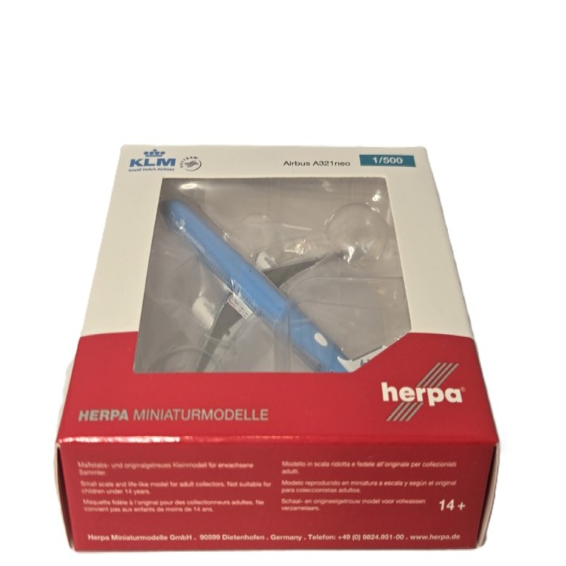 This die-cast metal model airplane is in a scale of 1/500. The model is