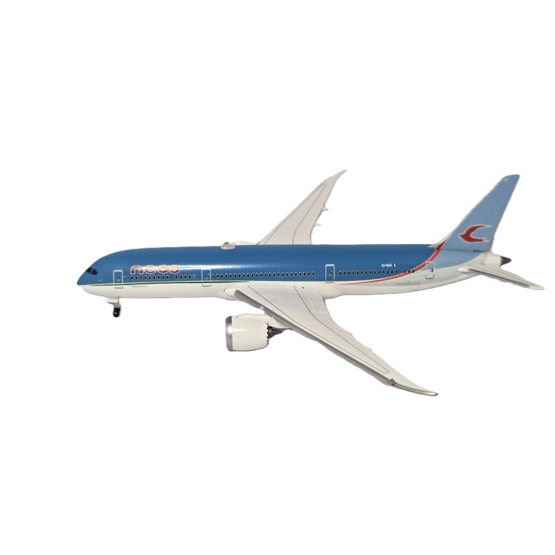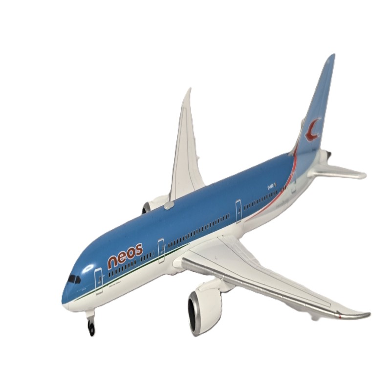 This die-cast metal model airplane is in a scale of 1/500. The model is approximately 5 ¾ inches long and has a wingspan of 5 inches. Suitable for collectors aged 14 and above.