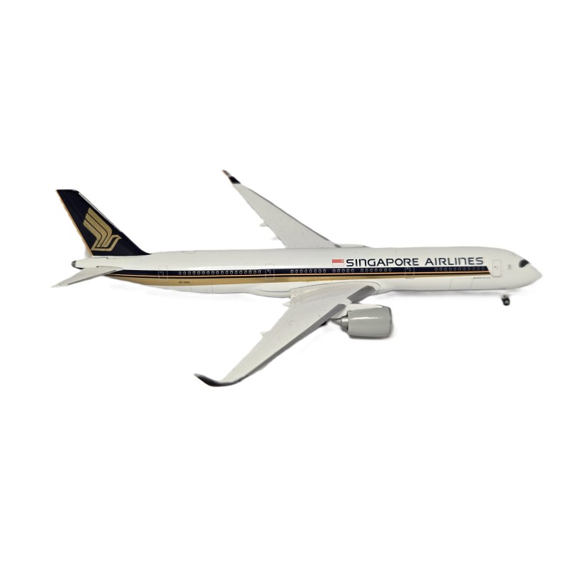 This die-cast metal model airplane is in a scale of 1/500. The model is approximately 5 ¾ inches long and has a wingspan of 5 inches. Suitable for collectors aged 14 and above.