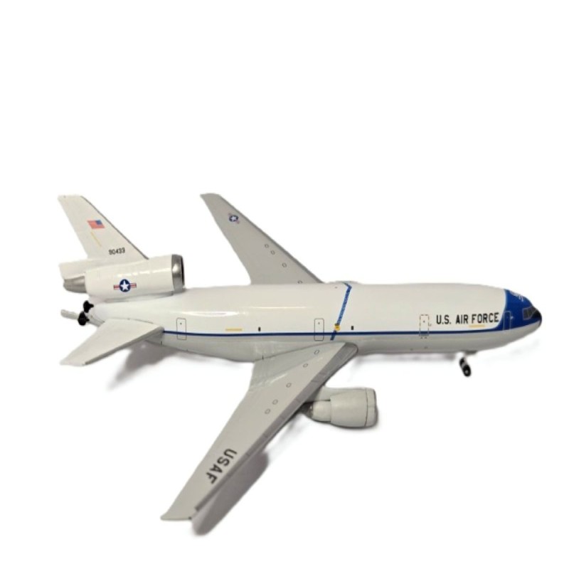 On September 26, 2024, the last two KC-10 Extenders left Travis Air Force Base. Since 1980, the KC-10 had been a crucial asset for U.S. and allied forces, flying airlift and aerial refueling missions across the globe. The KC-10 could carry twice as much fuel as the older KC-135 and at the same time almost as much cargo as the C-17 Globemaster. To commemorate its retirement, Herpa is releasing a small three-model, limited-edition series of the trijet. The first model sports the insignia of the 60th Air Mobility Wing, the final U.S Air Force unit to operate the Extender (item no. 538367). In addition to a KC-10 in the original delivery colors of the Royal Netherlands Air Force (item no. 538374), the very first of 60 KC-10 built for the USAF, serial number 79-0433, is also being released in a limited edition in its original blue-and-white color scheme. She was ultimately retired in 2022 and is today on display at the Air Mobility Command Museum on Dover Air Force Base in Delaware.