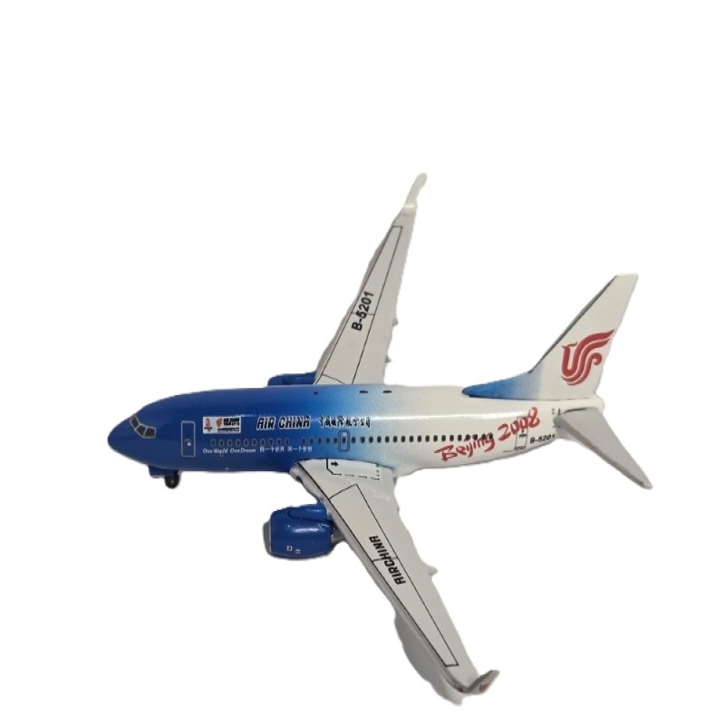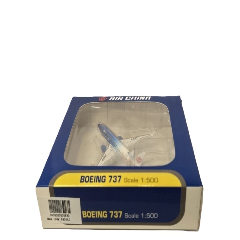 This die-cast metal model airplane is in a scale of 1/500. The model is approximately 5 ¾ inches long and has a wingspan of 5 inches. Suitable for collectors aged 14 and above.